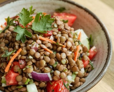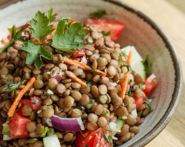 Papas, Lentejas, Huevos, Semillas, Cebolla, Hojas verdes.