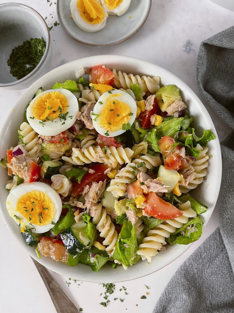 Fideos, Tomates, Huevos, Garbanzos, Hojas verdes